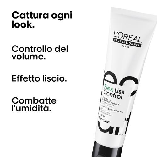 L'Oréal Professionnel Tecni.Art Liss Control è una crema gel per il controllo del liscio. Dona controllo e protezione dall'umidità per 24 ore.
