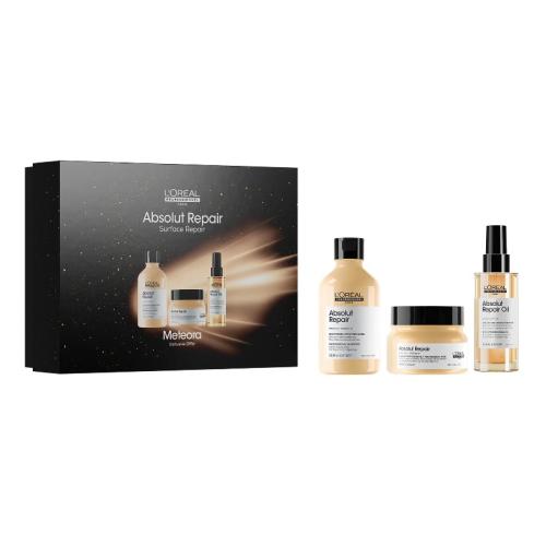 Il Cofanetto Natale Absolut Repair Trio è la routine professionale per capelli secchi danneggiati. Con estratti di GOLD QUINOA e PROTEINE, la formula professionale Absolut Repair rinnova e sigilla le cuticole mantenendo l'idratazione.