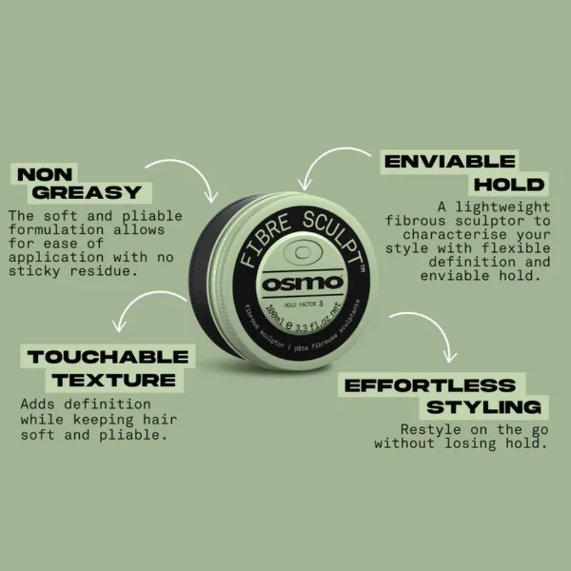 OSMO Fibre Sculpt è una pasta fibrosa leggera per dare definizione al look e una tenuta invidiabile. Formula leggera, non grassa garantisce controllo e flessibilità. Finitura opaca.