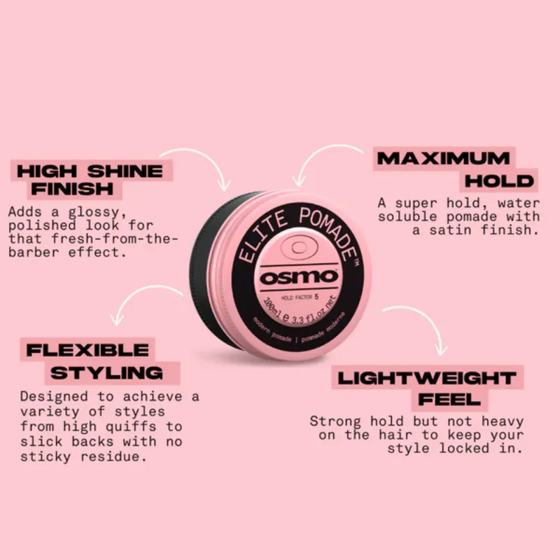 OSMO Elite Pomade è una pomata idrosolubile a tenuta massima con finitura opaca. Progettata per ottenere una varietà di stili senza lasciare residui appiccicosi.