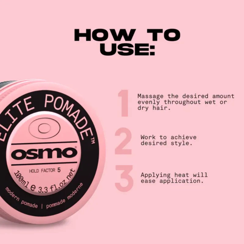 Massaggiare la quantità desiderata di OSMO Elite Pomade su capelli umidi o asciutti. Adatta a capelli corti e di media lunghezza.