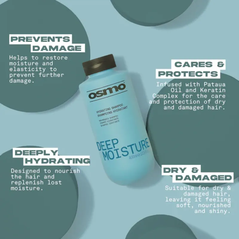OSMO Deep Moisture Shampoo è uno shampoo nutriente per capelli secchi e sfibrati. La sua formula altamente idratante, con estratto di Olio di Seje (Pataua) e Complesso di Cheratina, cura e protegge i capelli secchi e sfibrati. OSMO Deep Moisture Shampoo lascia i capelli morbidi, nutriti e brillanti. Ideale per capelli ribelli e deboli.