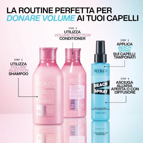 Vaporizzare Redken Beach Spray su capelli umidi o asciutti e lavorare con le mani. Può essere riapplicato durante la giornata per un refresh del look.