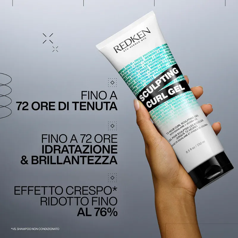 Redken Curls Stylers Sculpting Curl Gel è un gel definizione per capelli ricci. Grazie alla sua texture dona forma e sigilla i ricci, protegge dal crespo e dona definizione fino a 72 ore. Formulato con olio di squalano e olio di jojoba per idratare e preservare la forma dei ricci senza appesantire ed evitando l'effetto crunch artificiale.