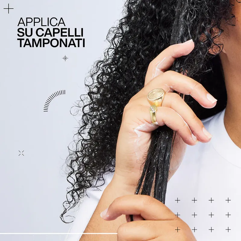 Applica Redken Curls Stylers Sculpting Curl Gel per sezioni sui capelli tamponati, massaggia e distribuisci su tutti i ricci. Asciuga. Definisci la forma dei ricci con le dita.